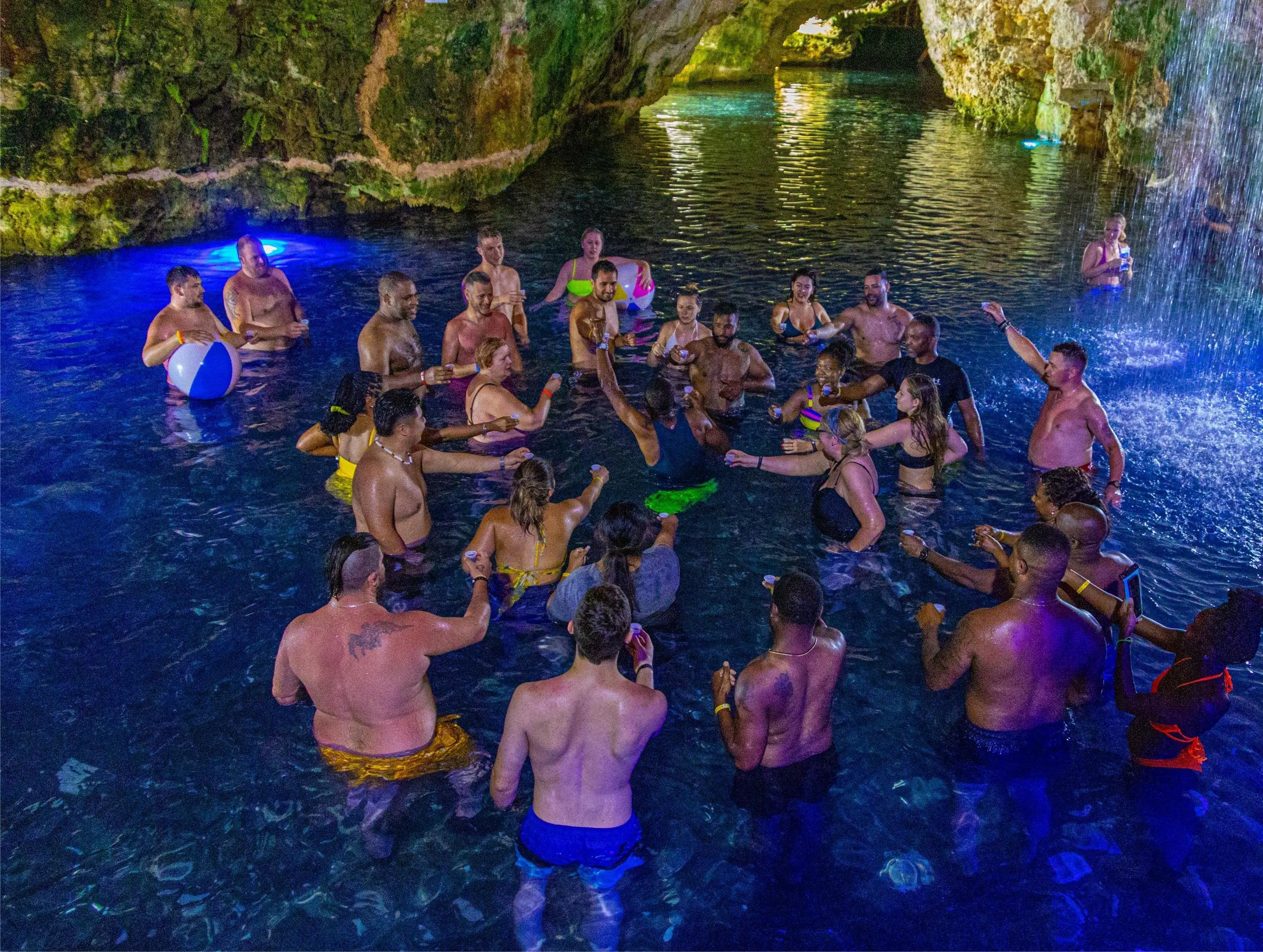 Afterwards, cool off in our exclusive underground CENOTE with a live DJ setting the mood. Once you've dried off, indulge in a 100/ typical Dominican dinner at our restaurant before concluding the night with a vibrant CARNIVAL SHOW.